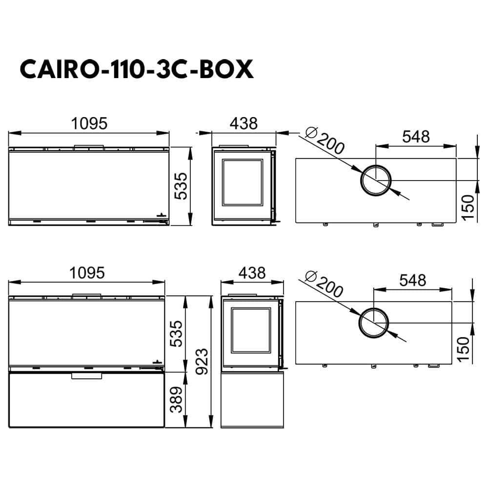 La estufa de leña Bronpi Cairo 110 3C Box, en formato de 110 cm y con visión panorámica a tres caras, ofrece una presencia sobria y muy decorativa junto a un rendimiento elevado. Permite elegir interior en vermiculita o Firetek y admite turbina opcional para mejorar la circulación del aire y la distribución del calor en la estancia.