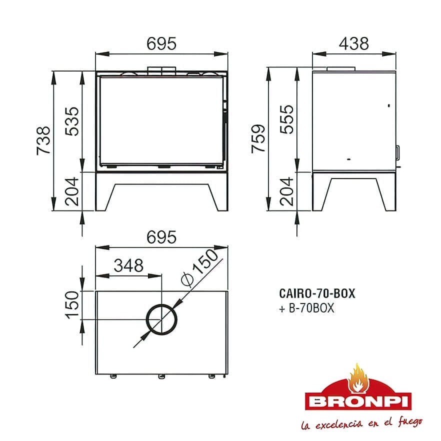 Estufa de Leña Insertable Mod. Cairo 70 Box de Bronpi