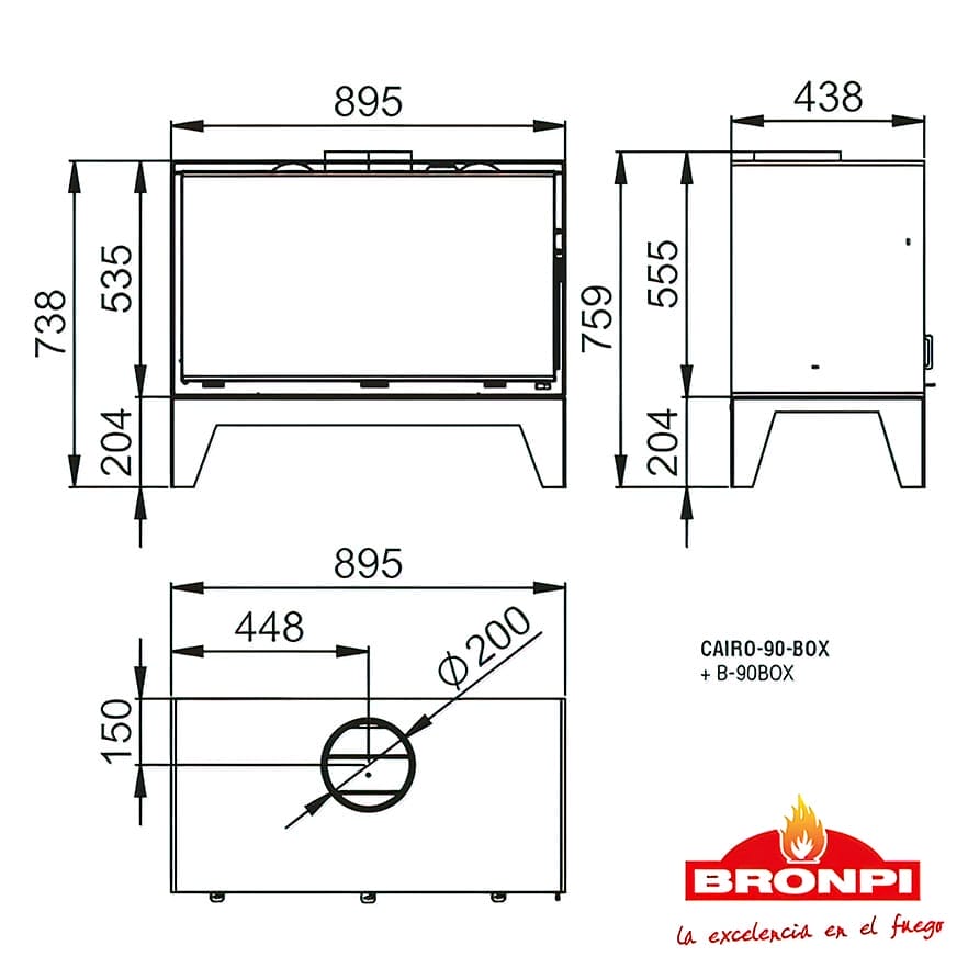 Estufa de Leña Insertable Mod. Cairo 90 Box de Bronpi