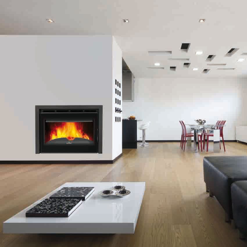 Una versión optimizada con frontal panorámico que amplía la visión de las llamas y realza la presencia del fuego en la estancia. Especialmente indicada para salones amplios o zonas abiertas donde se busca un mayor impacto visual.