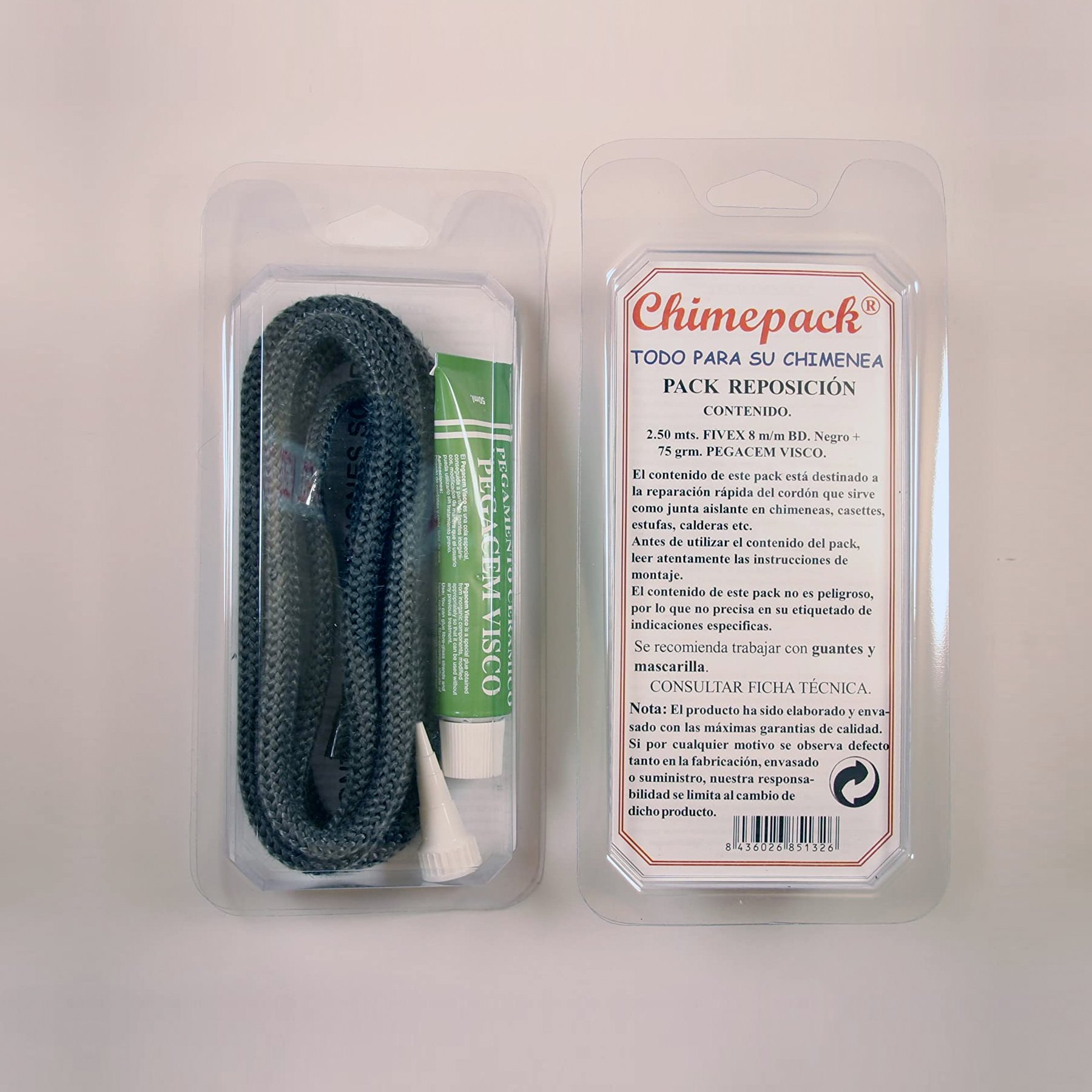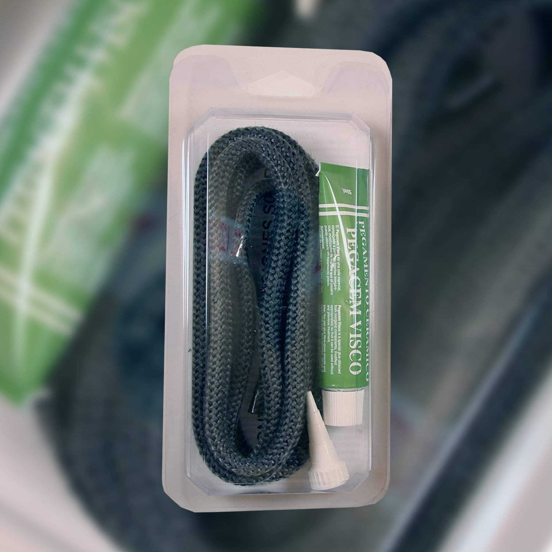 Kit de reparación en color negro, indicado para el mantenimiento y la restauración de superficies de estufas y chimeneas, ayudando a conservar un acabado uniforme.