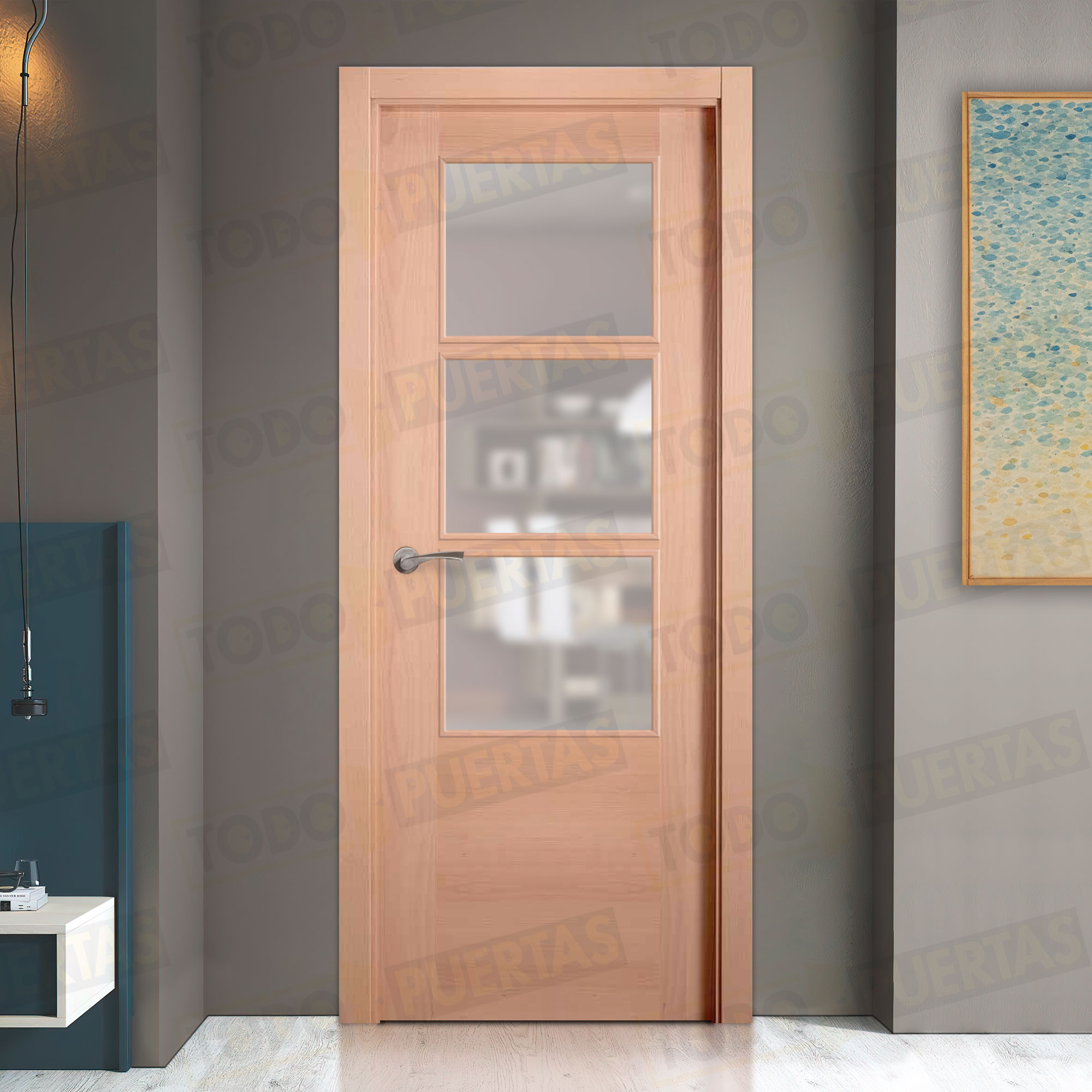 Puerta Block Maciza de Aglomerado con un acabado de alta calidad que da gusto tocar, conseguido con una chapa de madera natural y un barniz natural de primera calidad y una garantía total que te incluye hasta el envío.