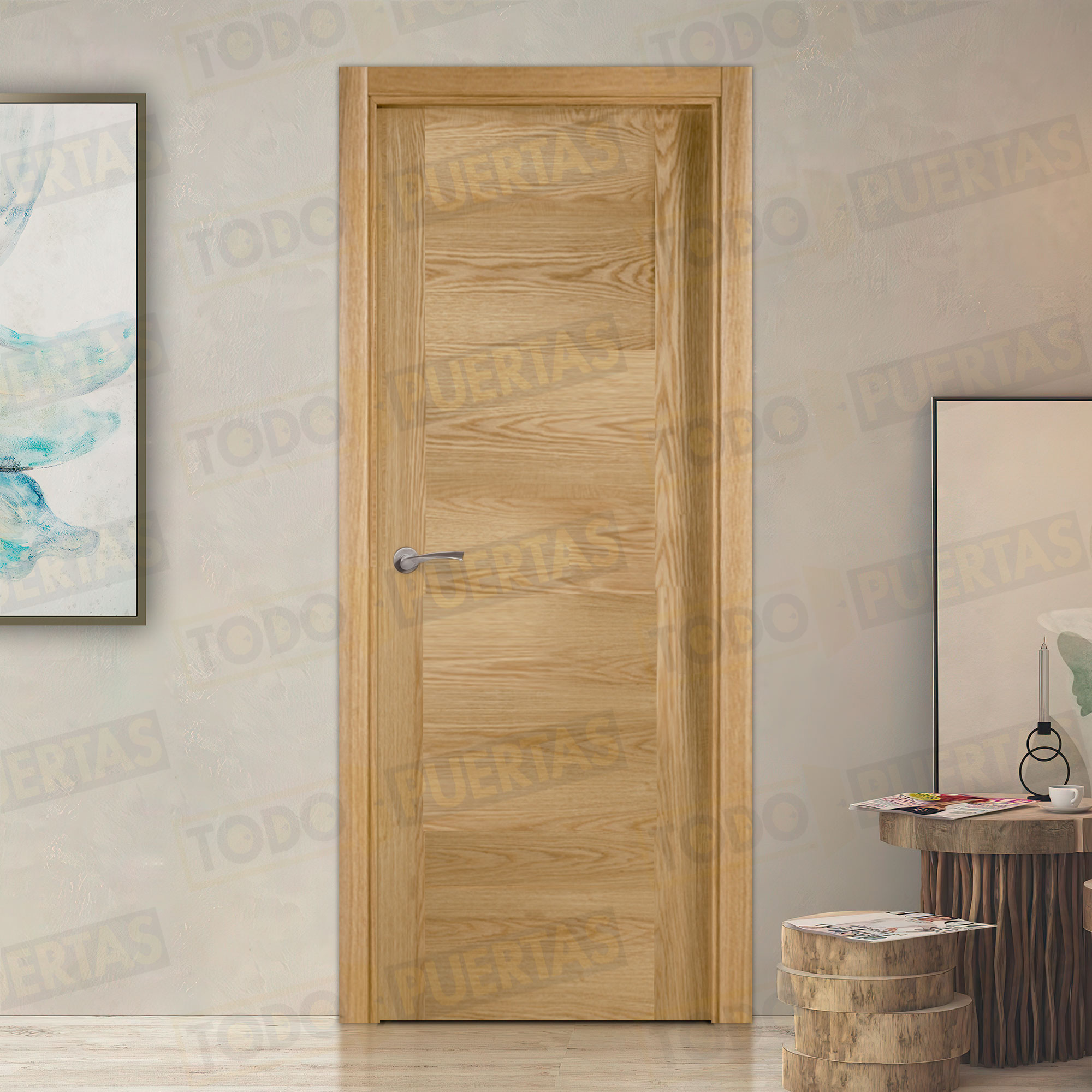 Puerta Block Maciza de Aglomerado con un acabado de alta calidad que da gusto tocar, conseguido con una chapa de madera natural y un barniz natural de primera calidad y una garantía total que te incluye hasta el envío.