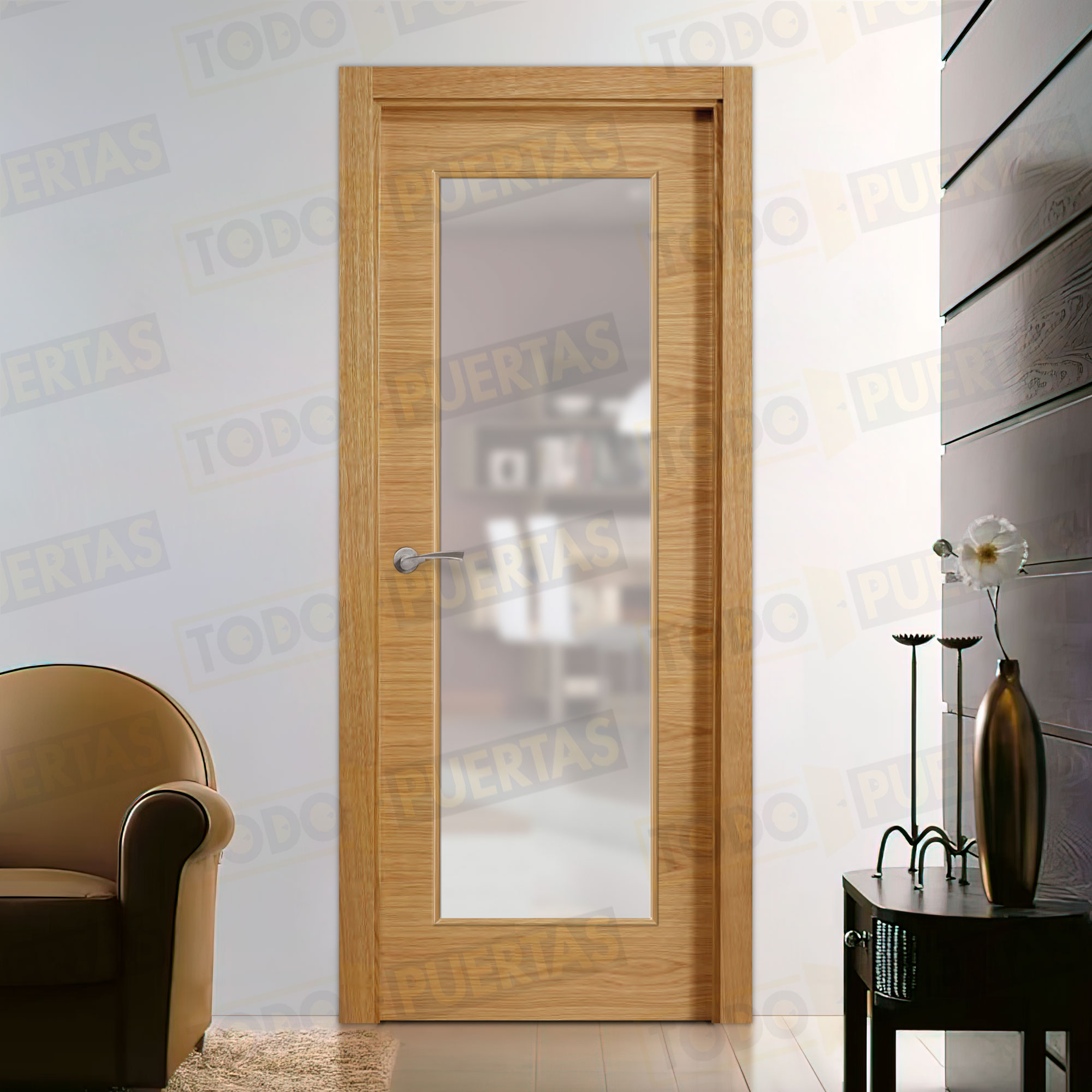 Puerta Block Maciza de Aglomerado con un acabado de alta calidad que da gusto tocar, conseguido con una chapa de madera natural y un barniz natural de primera calidad y una garantía total que te incluye hasta el envío.
