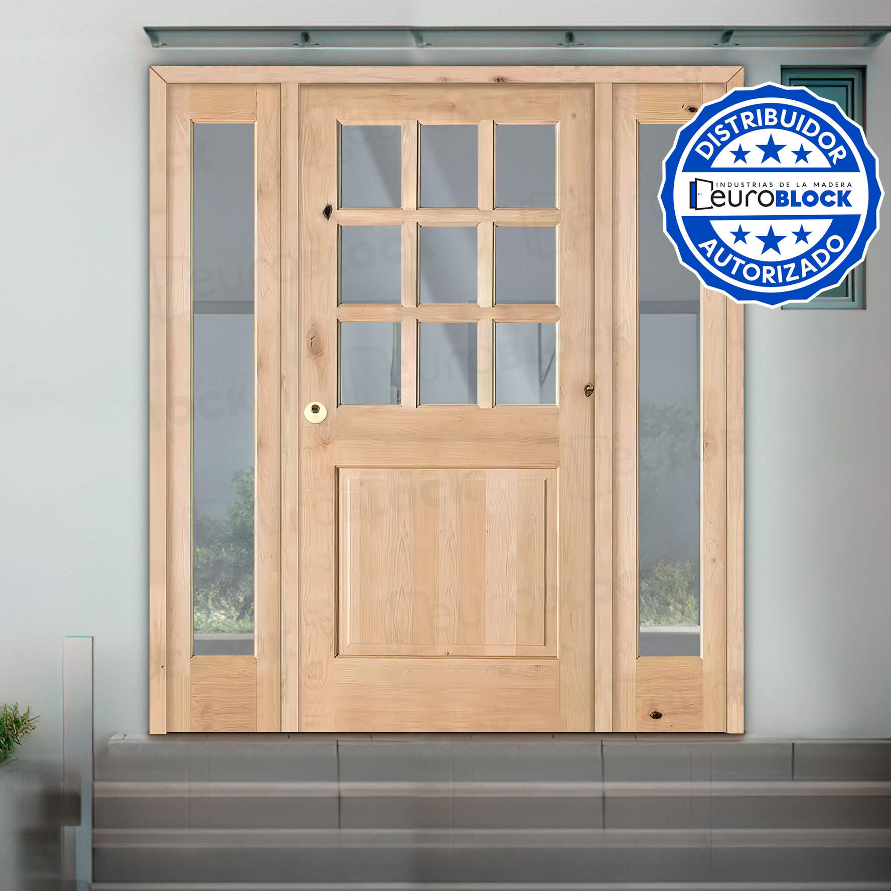 Puerta de Exterior Mod. 1100-V9 con Dos Fijos de Madera Maciza
