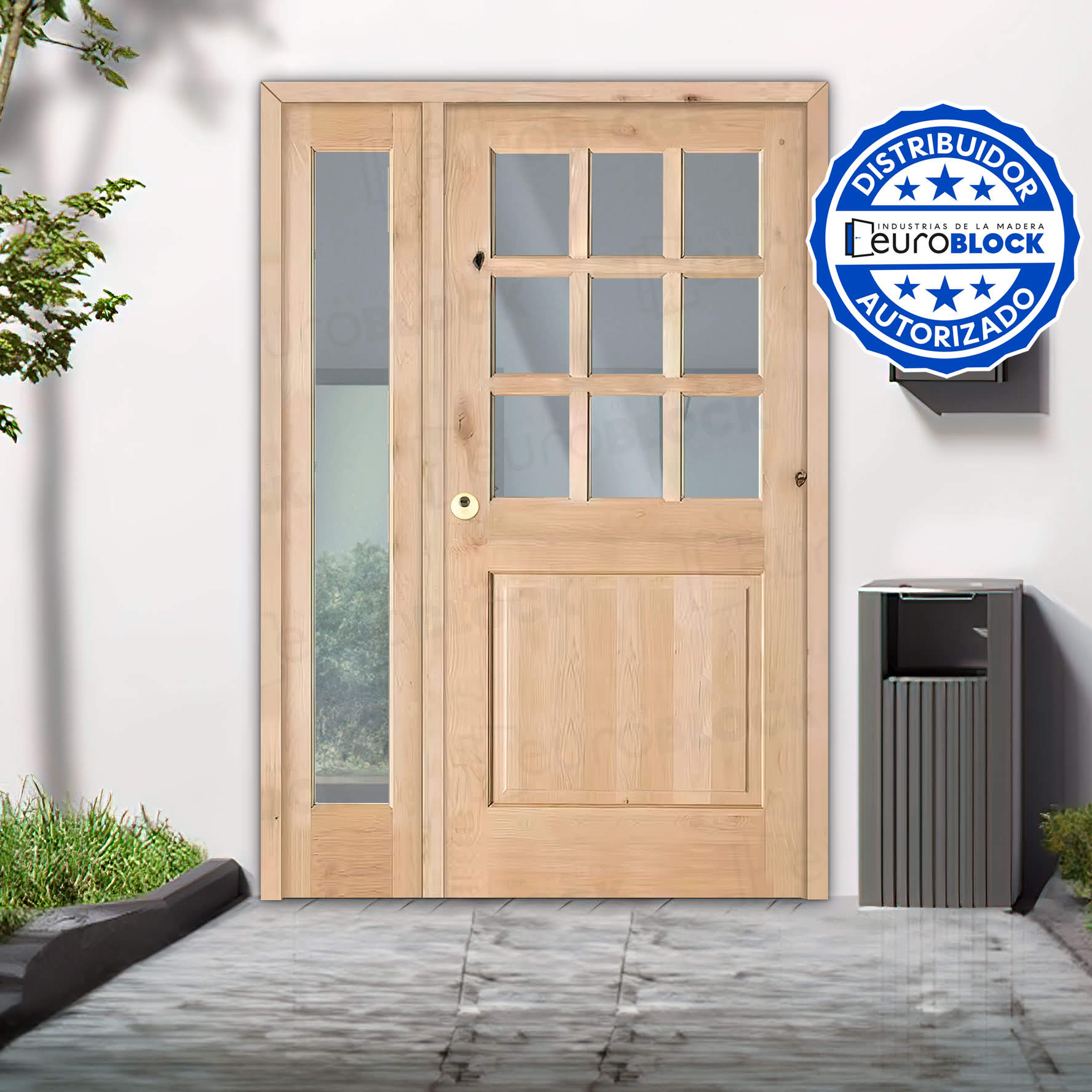Puerta de Exterior Mod. 1100-V9 con Fijo de Madera Maciza
