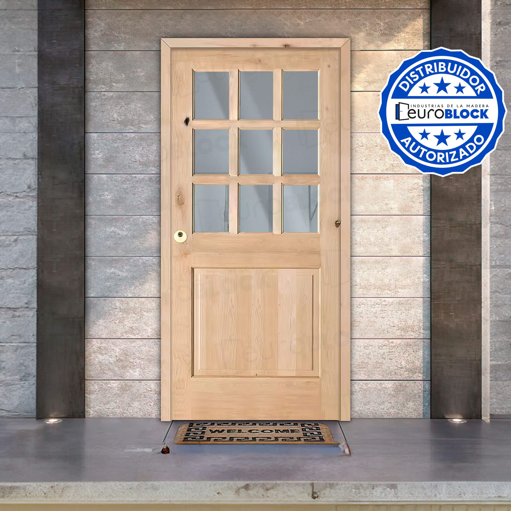 Puerta de Exterior Mod. 1100-V9 de Madera Maciza