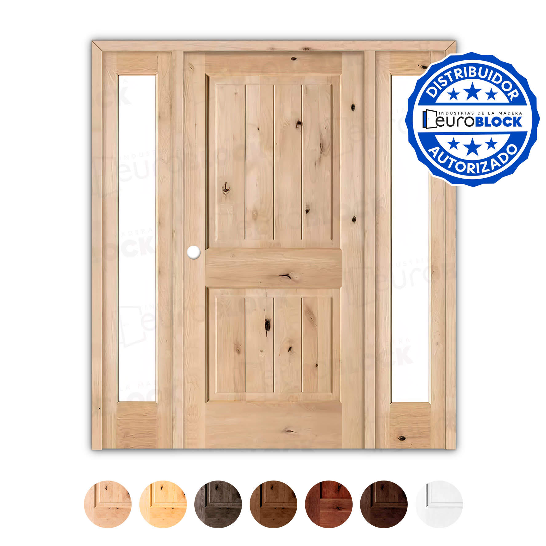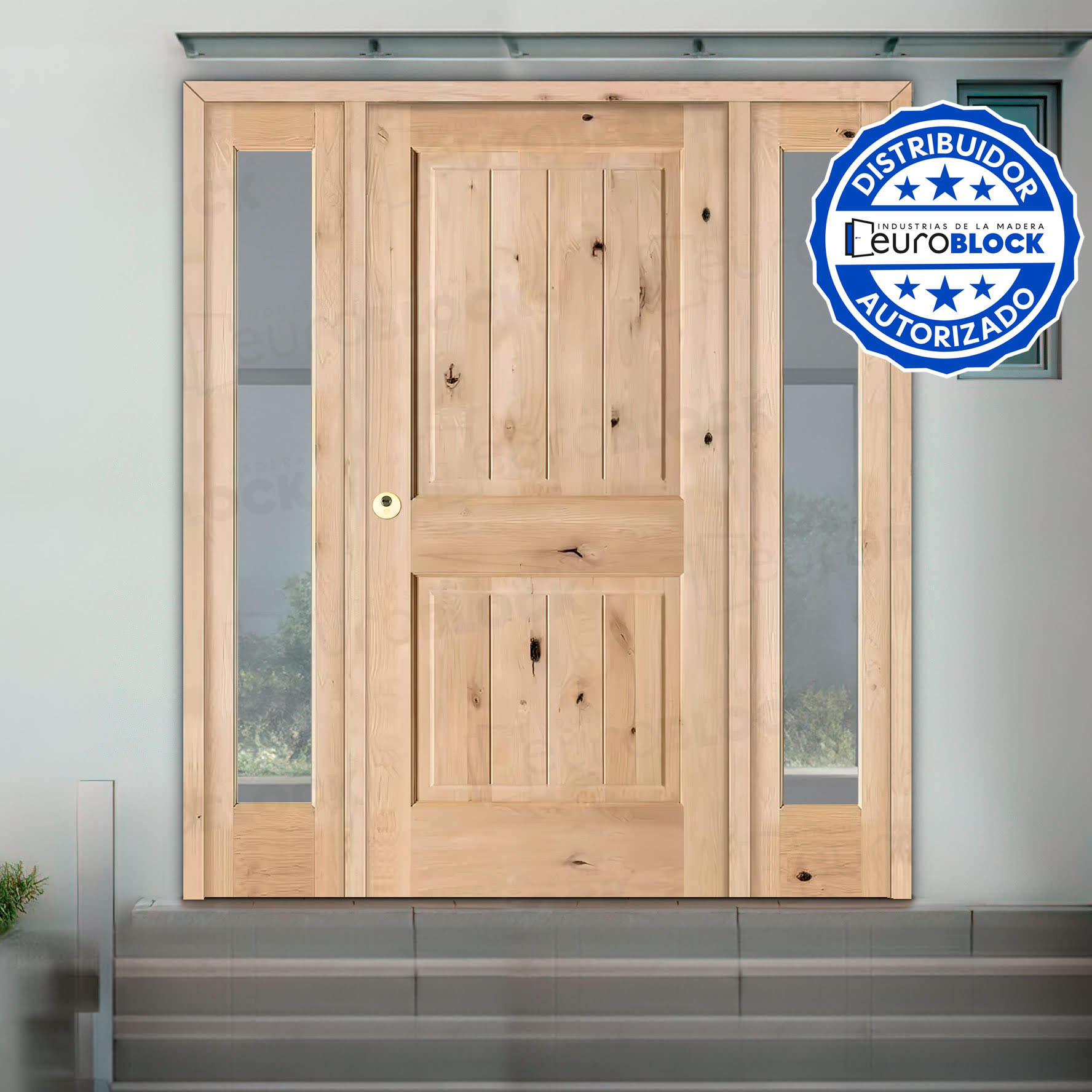 Puerta de Exterior Mod. 2100 con Dos Fijos de Madera Maciza