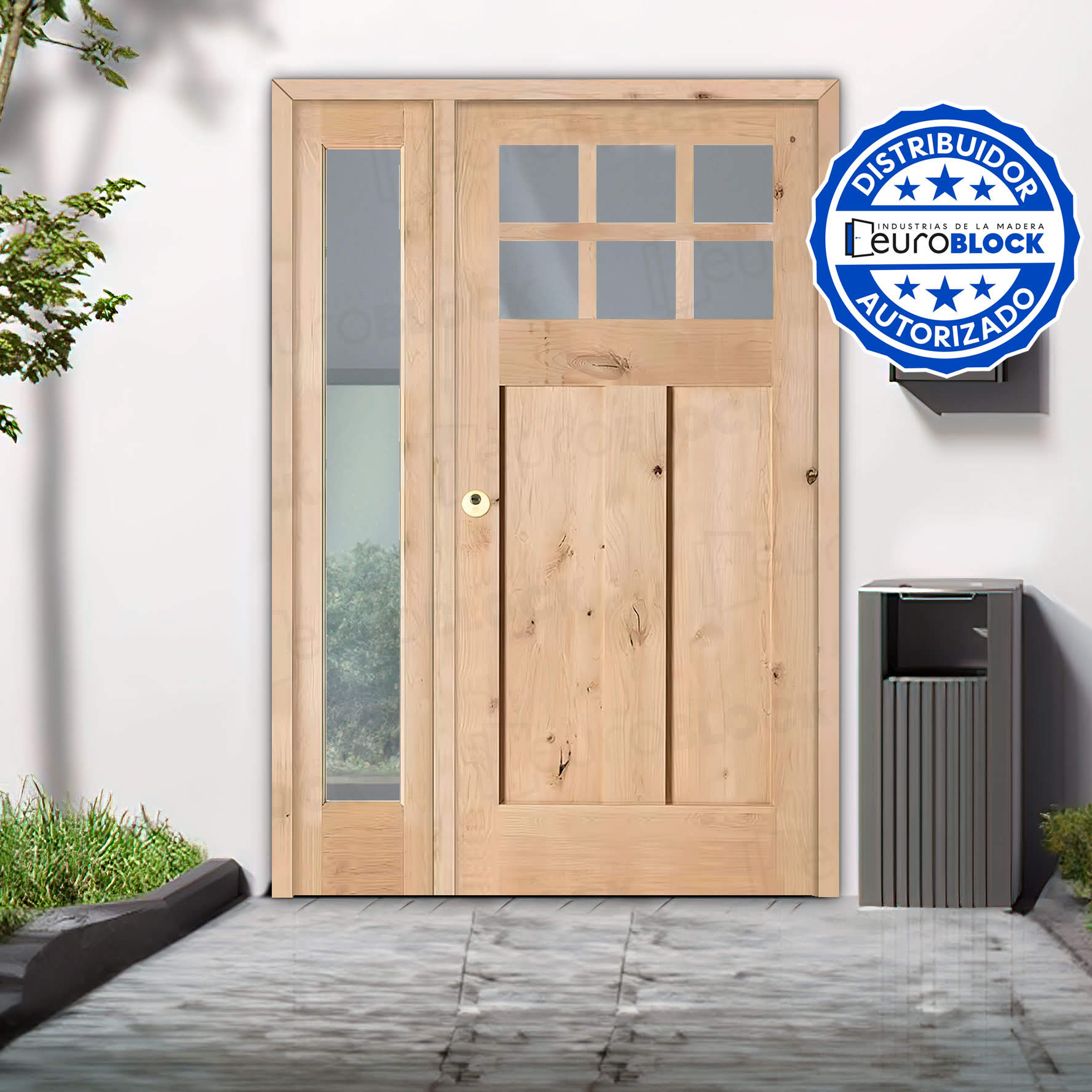 Puerta de Exterior Mod. 4100-V6 con Fijo de Madera Maciza