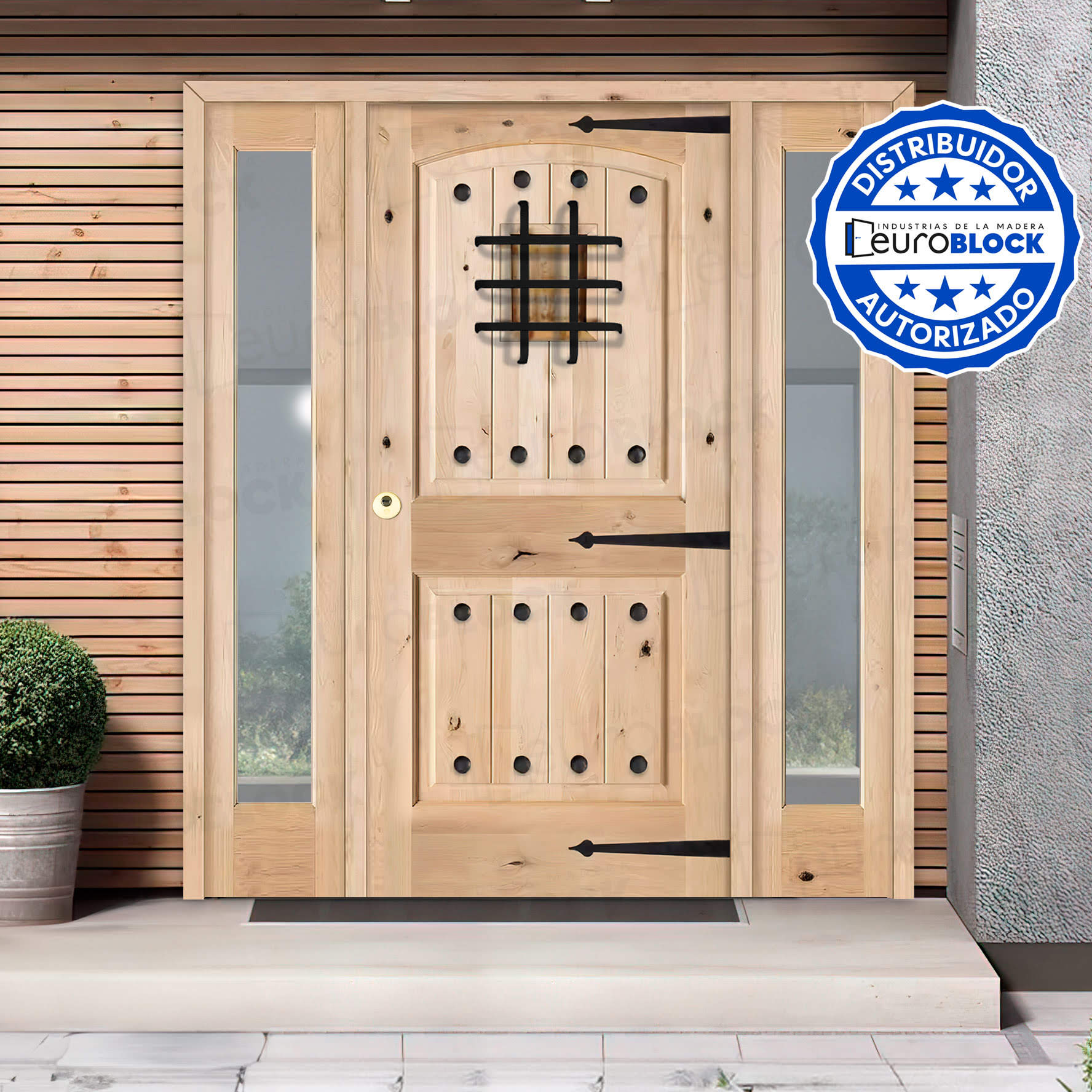 Puerta de Exterior Mod. 8100 con Dos Fijos de Madera Maciza