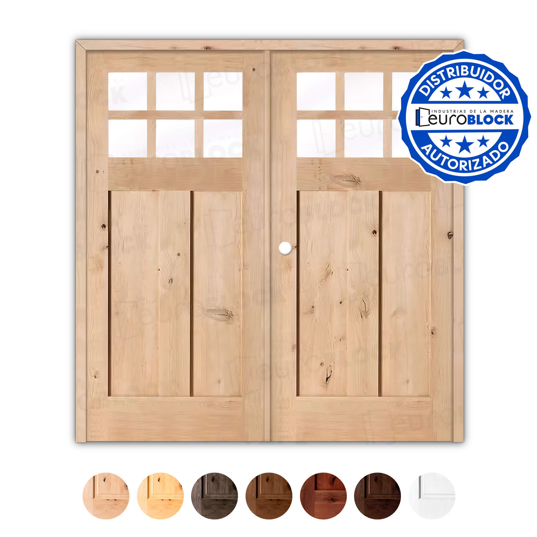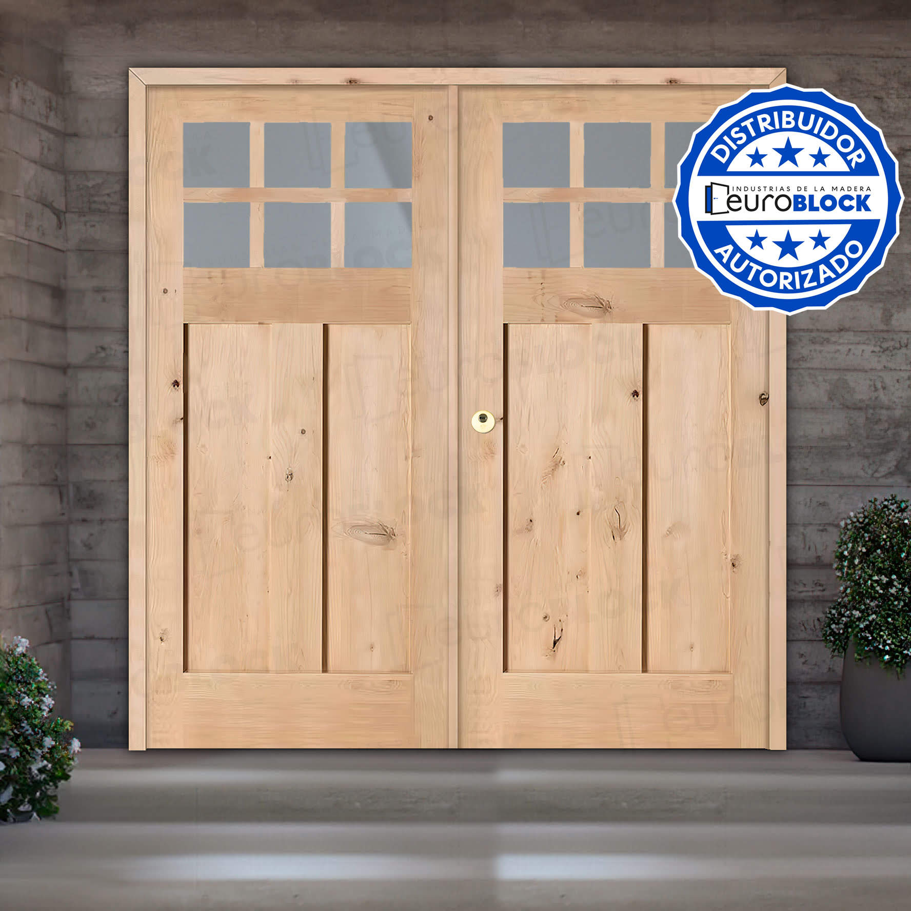 Puerta Doble de Exterior Mod. 4100-V6 Fijos de Madera Maciza