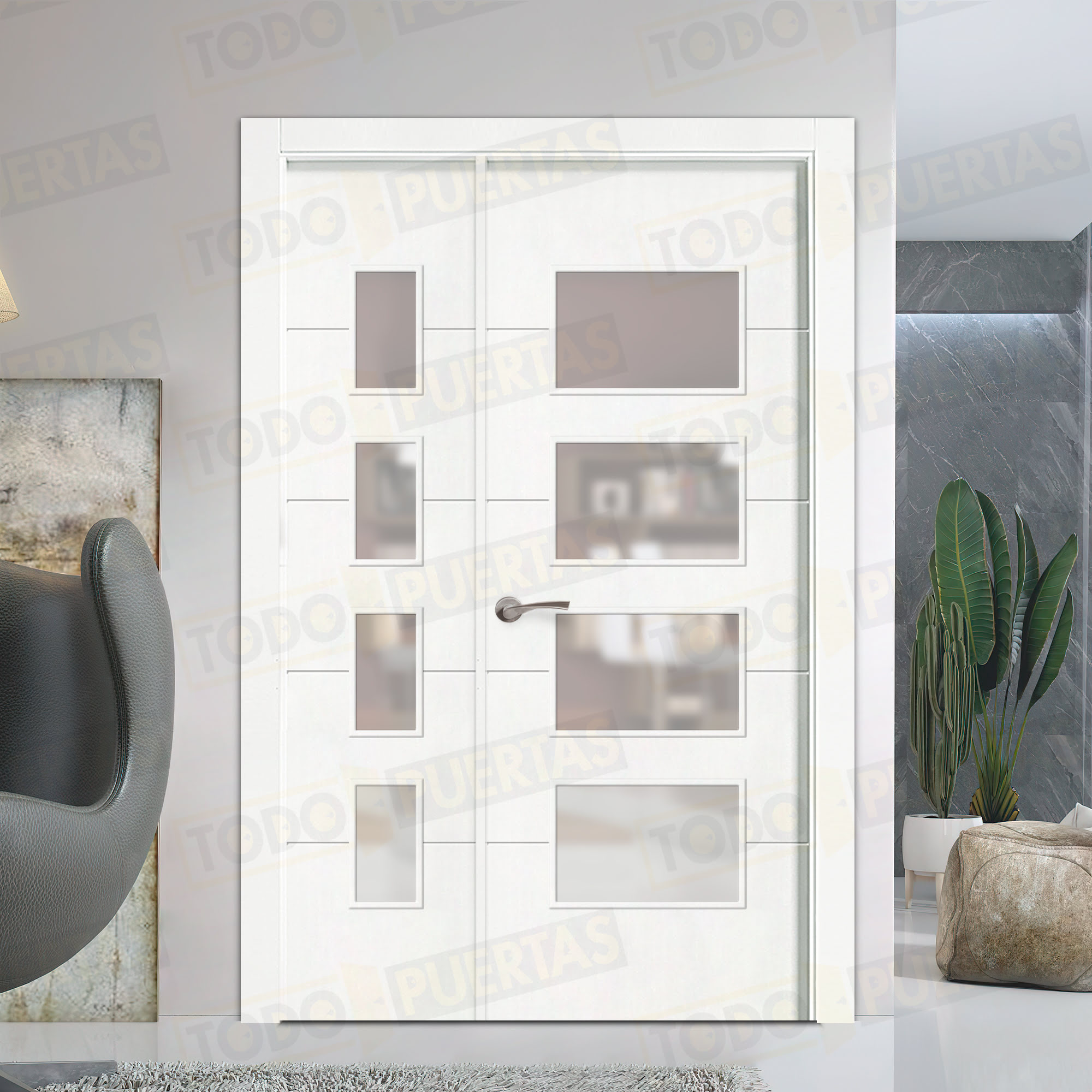 Puerta Doble de Salón de MDF con un acabado de alta calidad que da gusto tocar, conseguido con 4 generosas capas de laca italiana de primera calidad y una garantía total que te incluye hasta el envío.