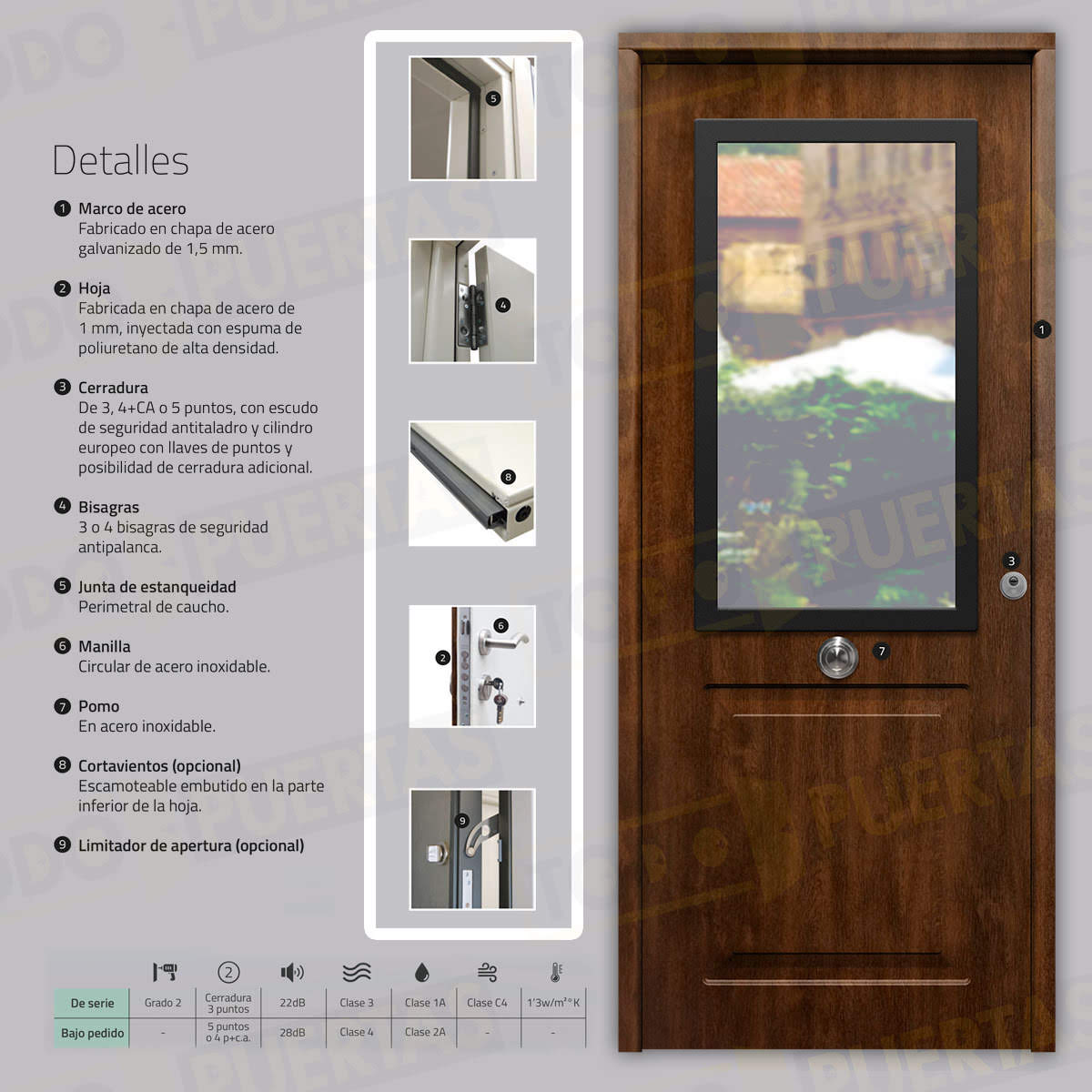 | Bisagras | Tres o Cuatro bisagras de seguridad antipalanca |