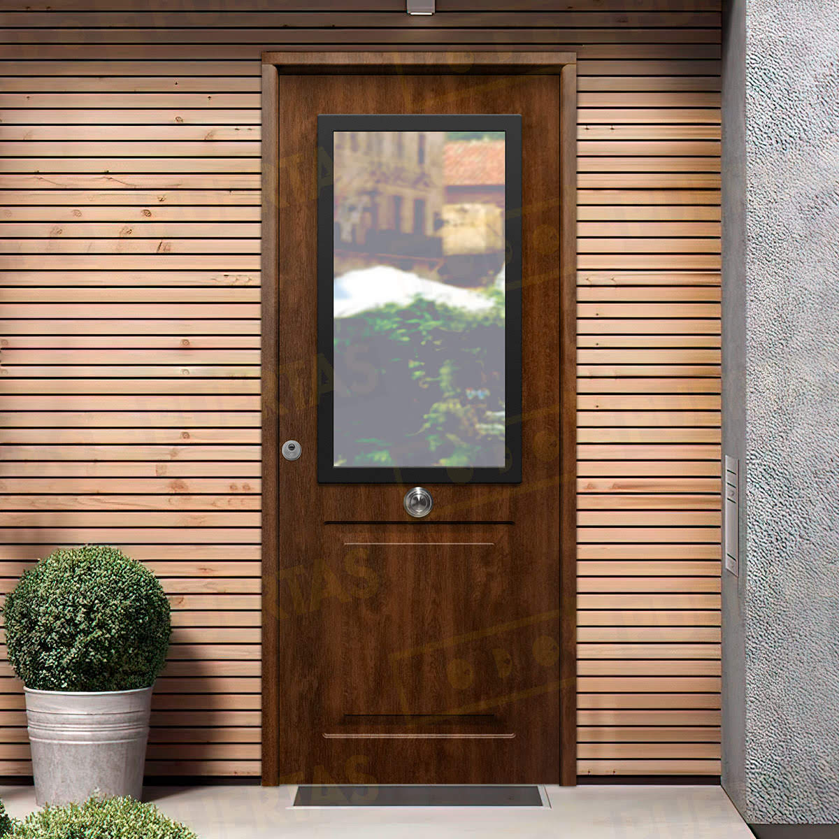 Puerta Galvanizada Clas-CR / Clas Saga 100 Cristal Roble Viejo (Dos Caras Iguales)