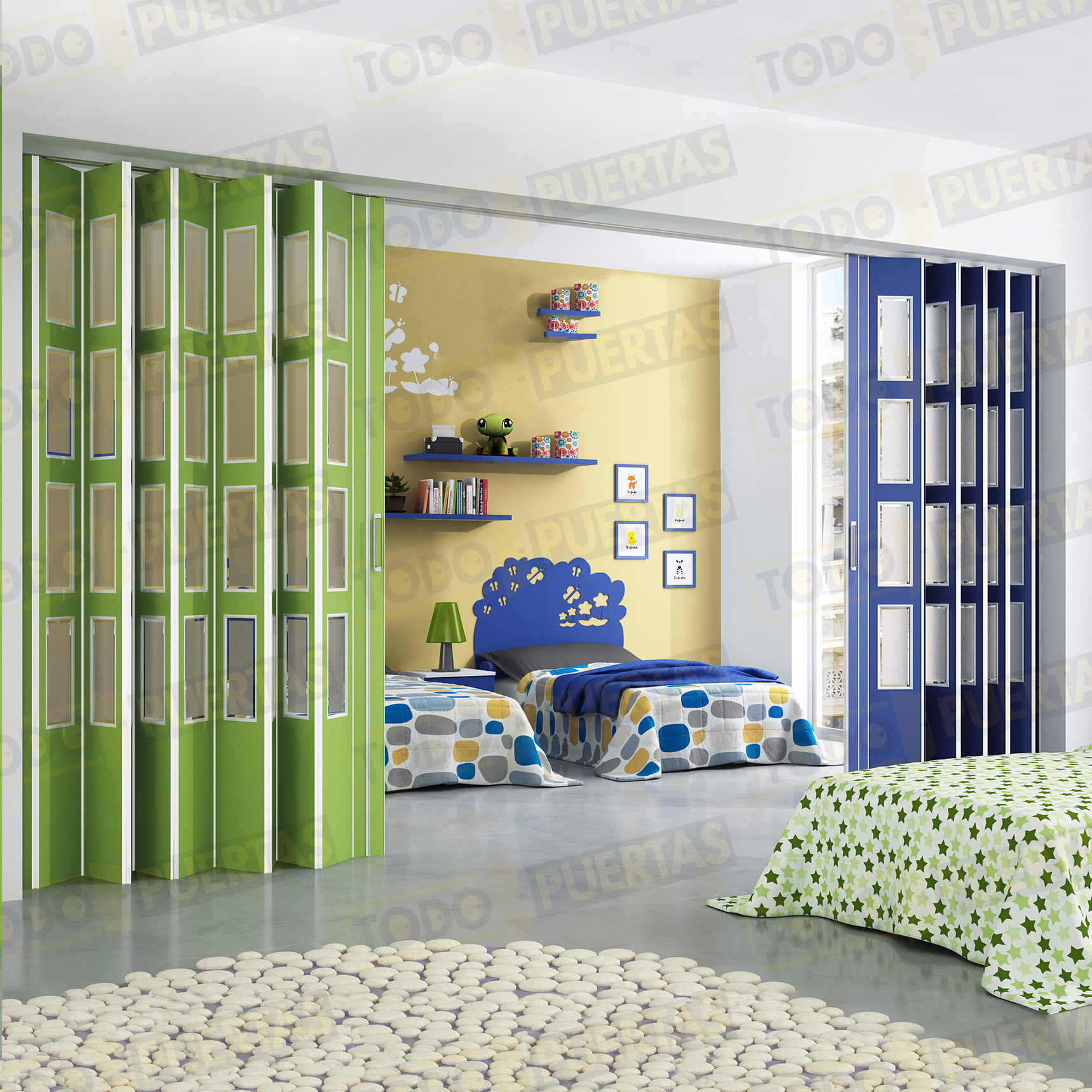 Esta puerta si se selecciona en color Arcade, Amalfi, Naranja, Rojo o Verde se suministrará con los tapacarriles, marcos y perfiles en color blanco.