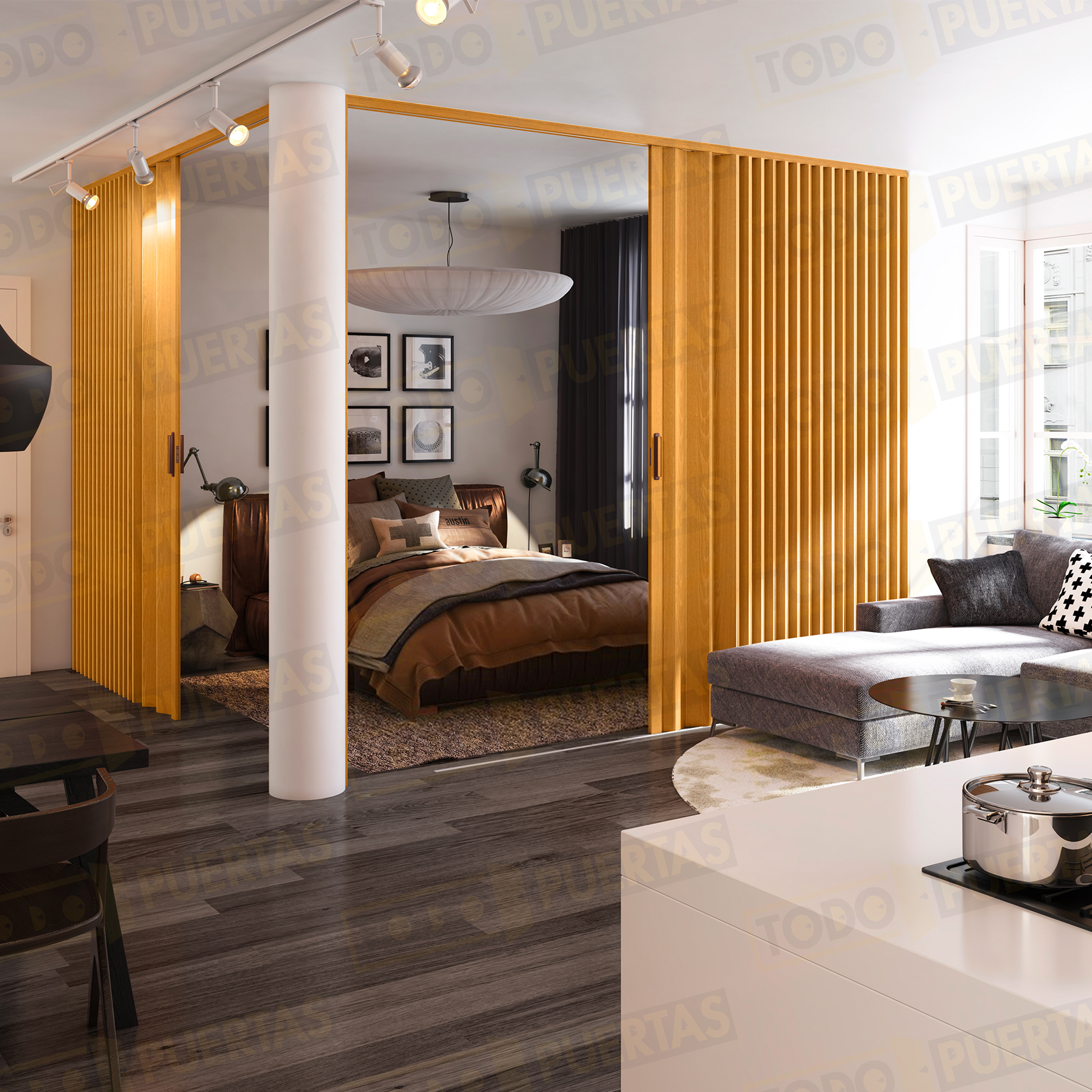 Nuestras puertas plegables solucionan el problema de espacio de apertura y aportan un look actual. Configura cómo la necesitas, la preparamos y la recibes en una caja lista para instalar fácil.