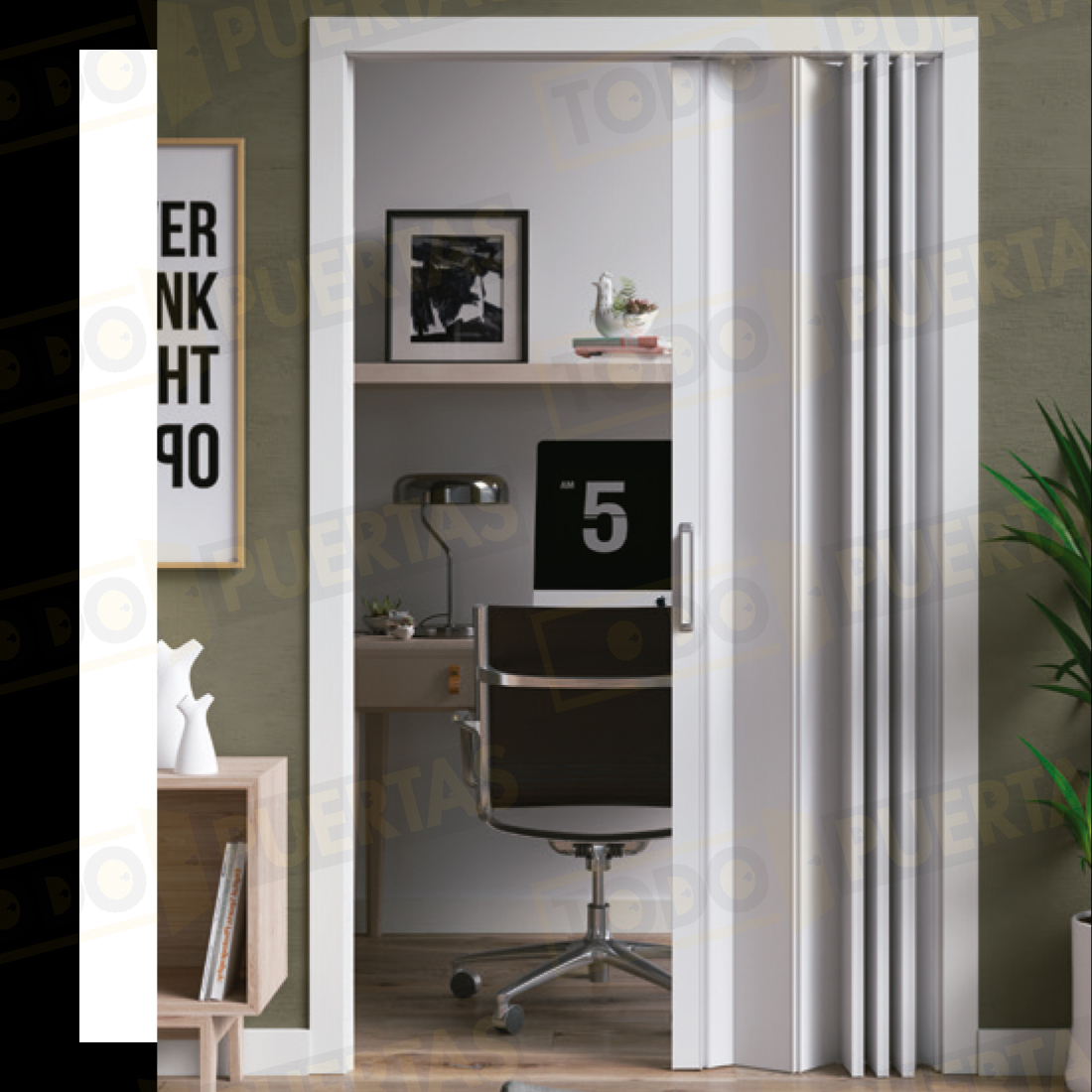 Nuestras puertas plegables solucionan el problema de espacio de apertura y aportan un look actual. Configura cómo la necesitas, la preparamos y la recibes en una caja lista para instalar fácil.