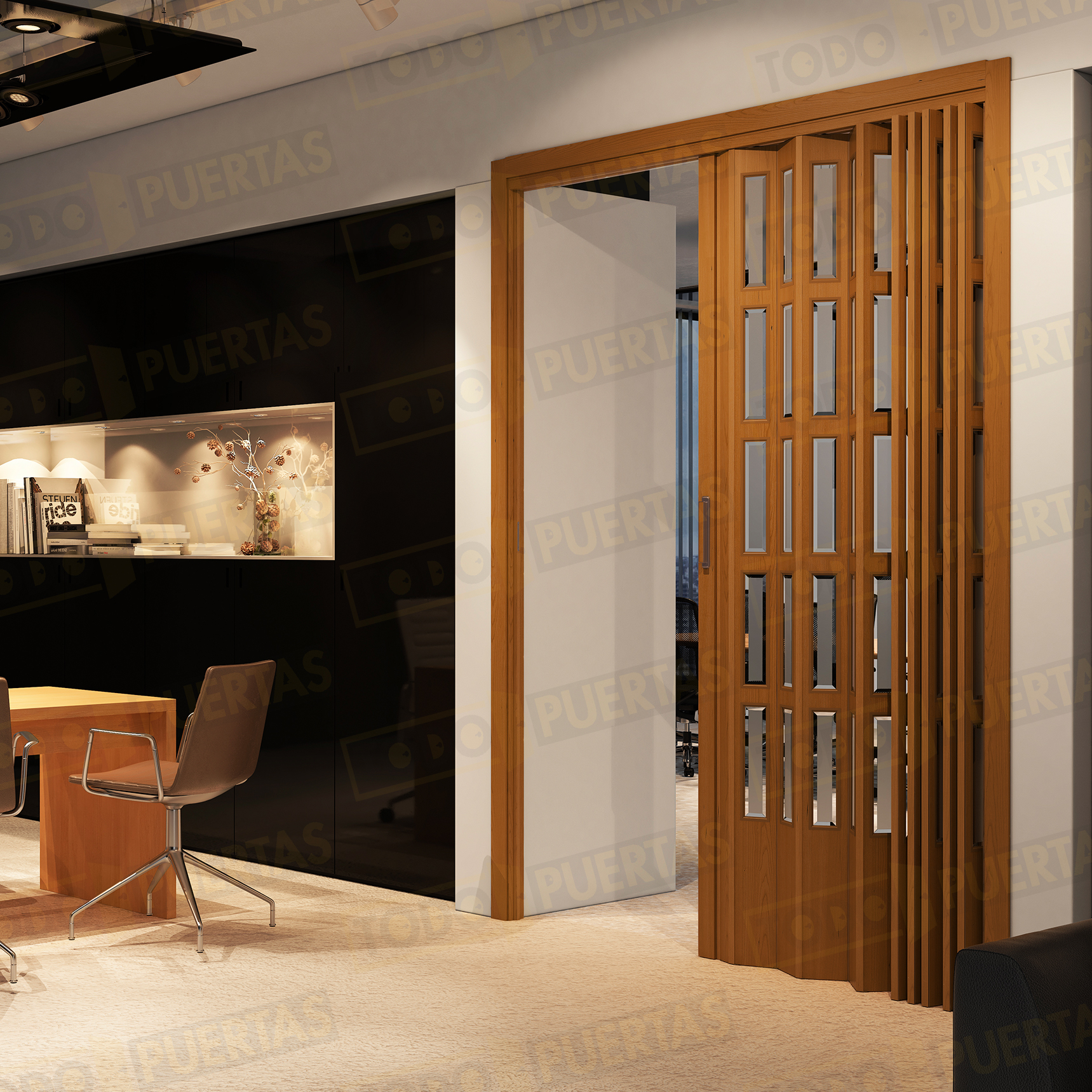Nuestras puertas plegables solucionan el problema de espacio de apertura y aportan un look actual. Configura cómo la necesitas, la preparamos y la recibes en una caja lista para instalar fácil.