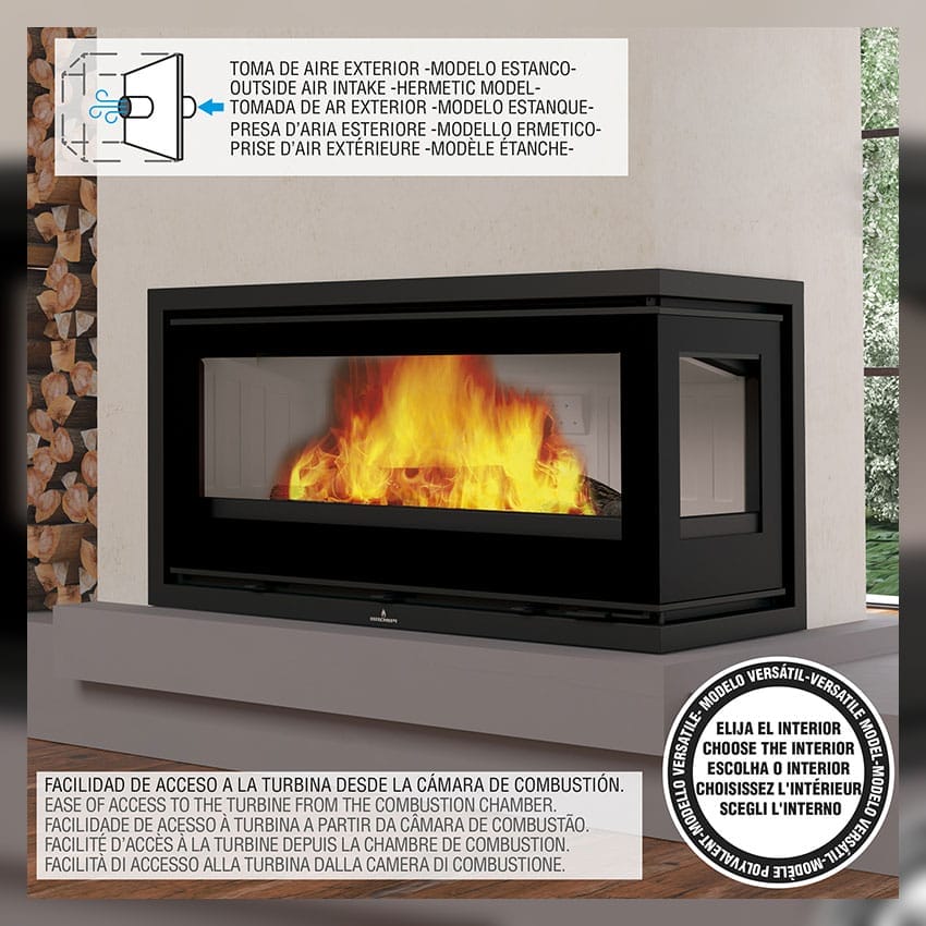 Reúne un alto aprovechamiento energético con una estética actual, incorporando un sistema de combustión orientado a un uso más eficiente y respetuoso con el entorno. Una opción equilibrada para hogares que buscan rendimiento y diseño.