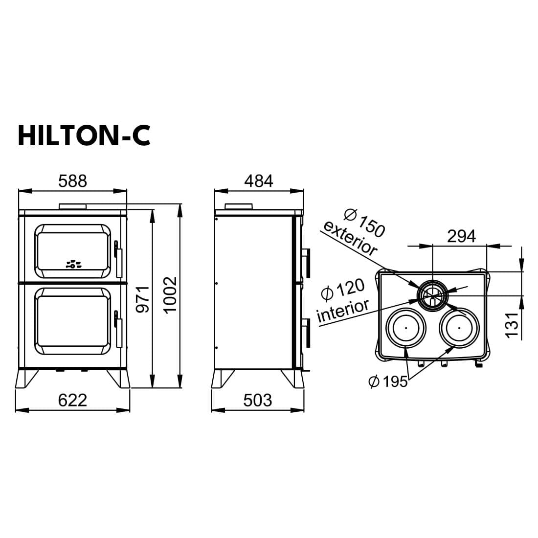 - Techo y aros de fundición para cocinar (Hilton C).