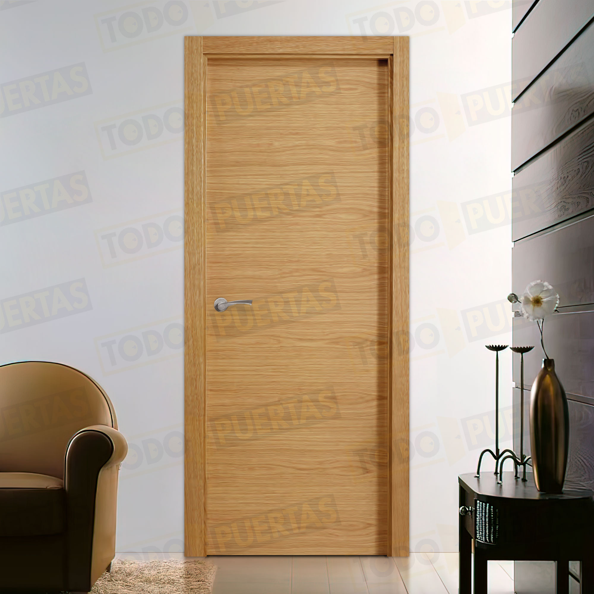 Puerta Block Maciza de Aglomerado con un acabado de alta calidad que da gusto tocar, conseguido con una chapa de madera natural y un barniz natural de primera calidad y una garantía total que te incluye hasta el envío.