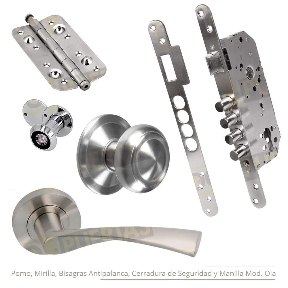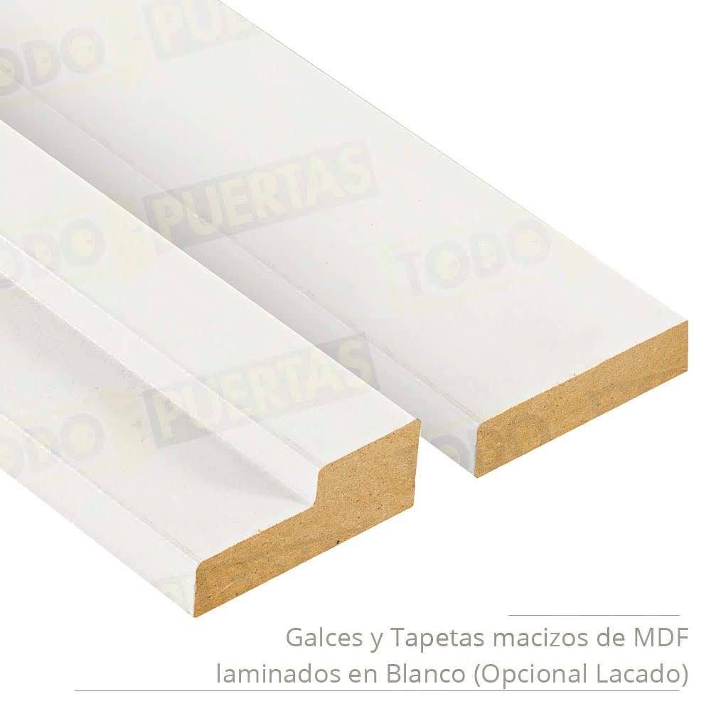 Incluido en el precio Galce Macizo de MDF / Tiras de Tapeta Macizas de MDF / Hoja Blindada de 2030 x 825 x 45 mm. / Bisagras Antipalanca / Cerradura de Seguridad de un Punto