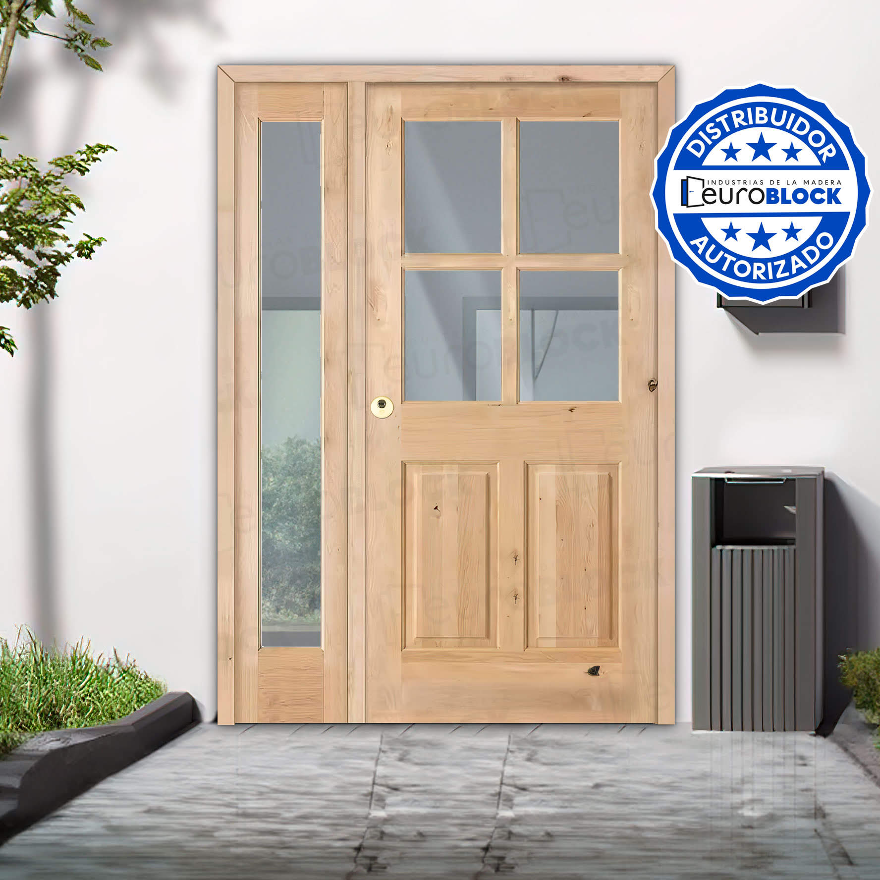Puerta de Exterior Mod. 5100 con Fijo de Madera Maciza
