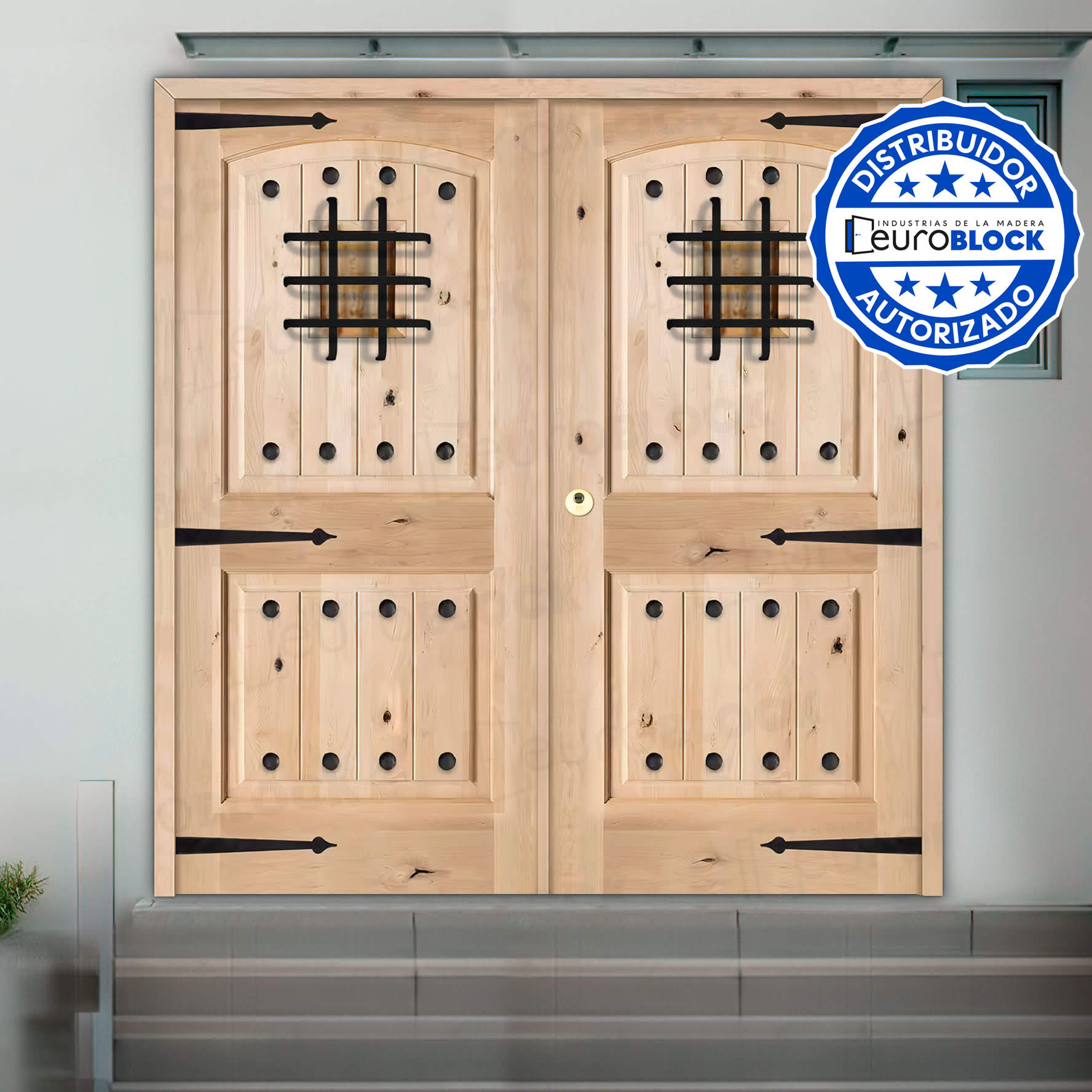 Puerta Doble de Exterior Mod. 8100 Fijos de Madera Maciza