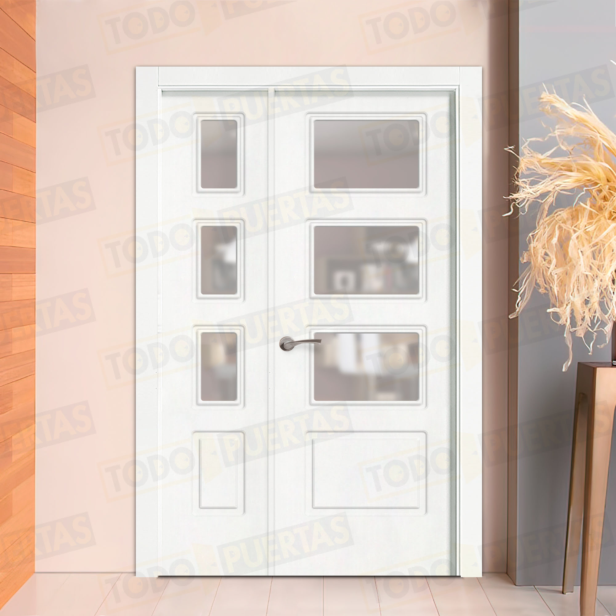 Puerta Doble de Salón de MDF con un acabado de alta calidad que da gusto tocar, conseguido con 4 generosas capas de laca italiana de primera calidad y una garantía total que te incluye hasta el envío.