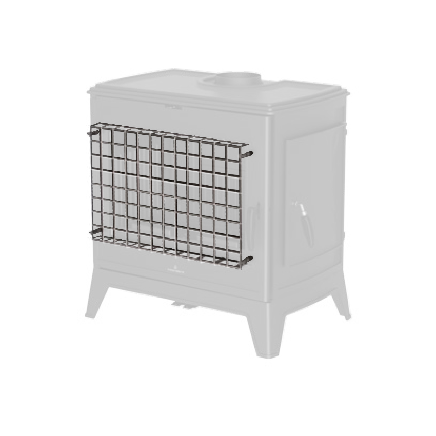 Rejilla protectora de cristal, diseñada para aumentar la seguridad de la chimenea o estufa y proteger el frontal frente a golpes o contactos accidentales.
